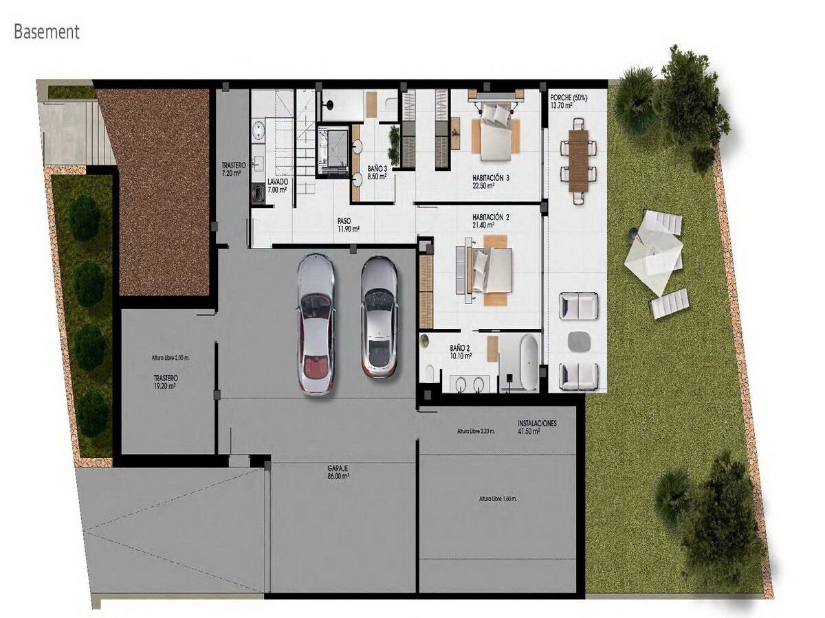 A complex of 11 unique and different villas, with independent plots of up to 622 m2, a total constructed area of up to 422 m2 and a private pool.