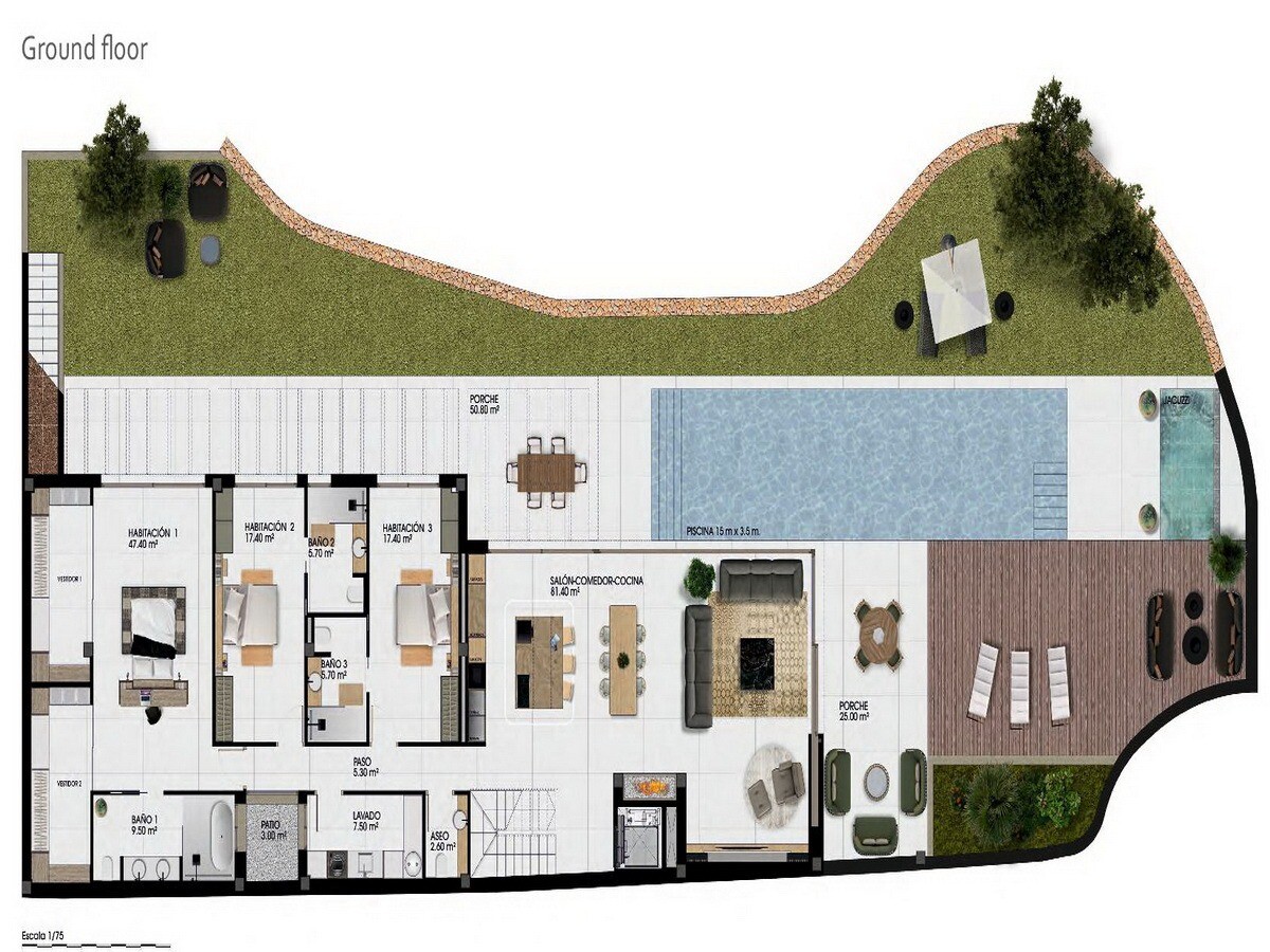 A complex of 11 unique and different villas, with independent plots of up to 622 m2, a total constructed area of up to 422 m2 and a private pool.