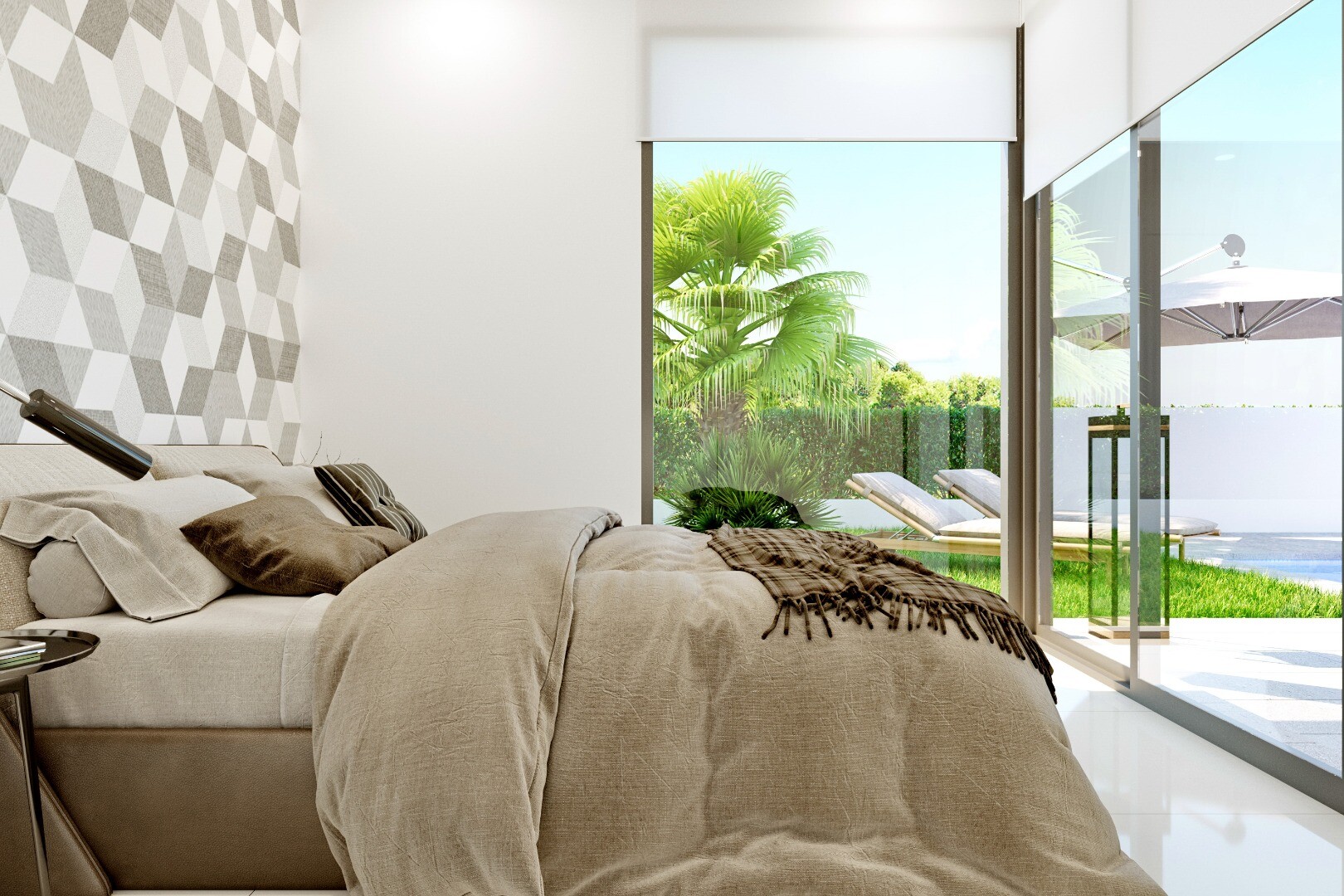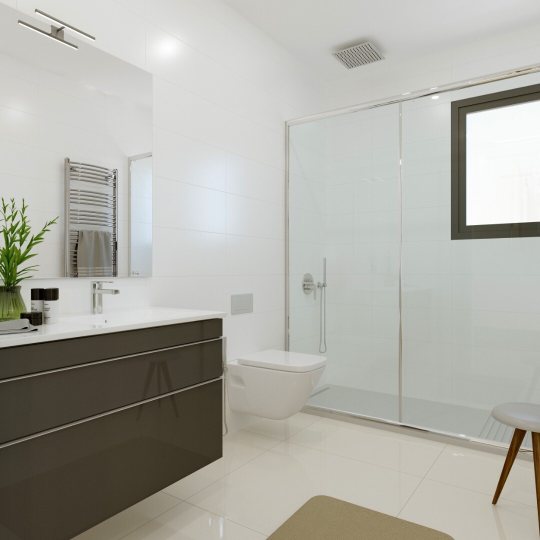 Independent villa located in a privileged environment with stunning sea views. The ground floor consists of a living room-kitchen of approximately 55 m2 with access to porch and terrace, a double bedroom, a bathroom and a storage room. The first floor consists of two en-suite bedrooms, two full bathrooms and a terrace. It also has a private pool an...d parking space. The house includes top quality kitchen furniture, exclusive design bathroom furniture with mirror and integrable lights, motorized blinds in bedrooms and bathrooms, installation of air conditioning and heating, ambient lighting outside the house and motorized sliding door. Land area 439 m2 The materials, finishes and / or constructive solutions may be modified for technical, supply or other reasons.