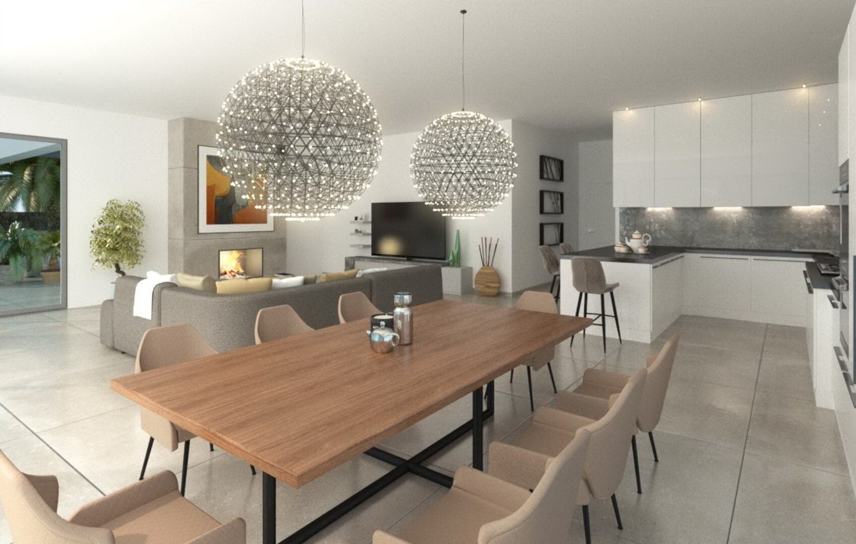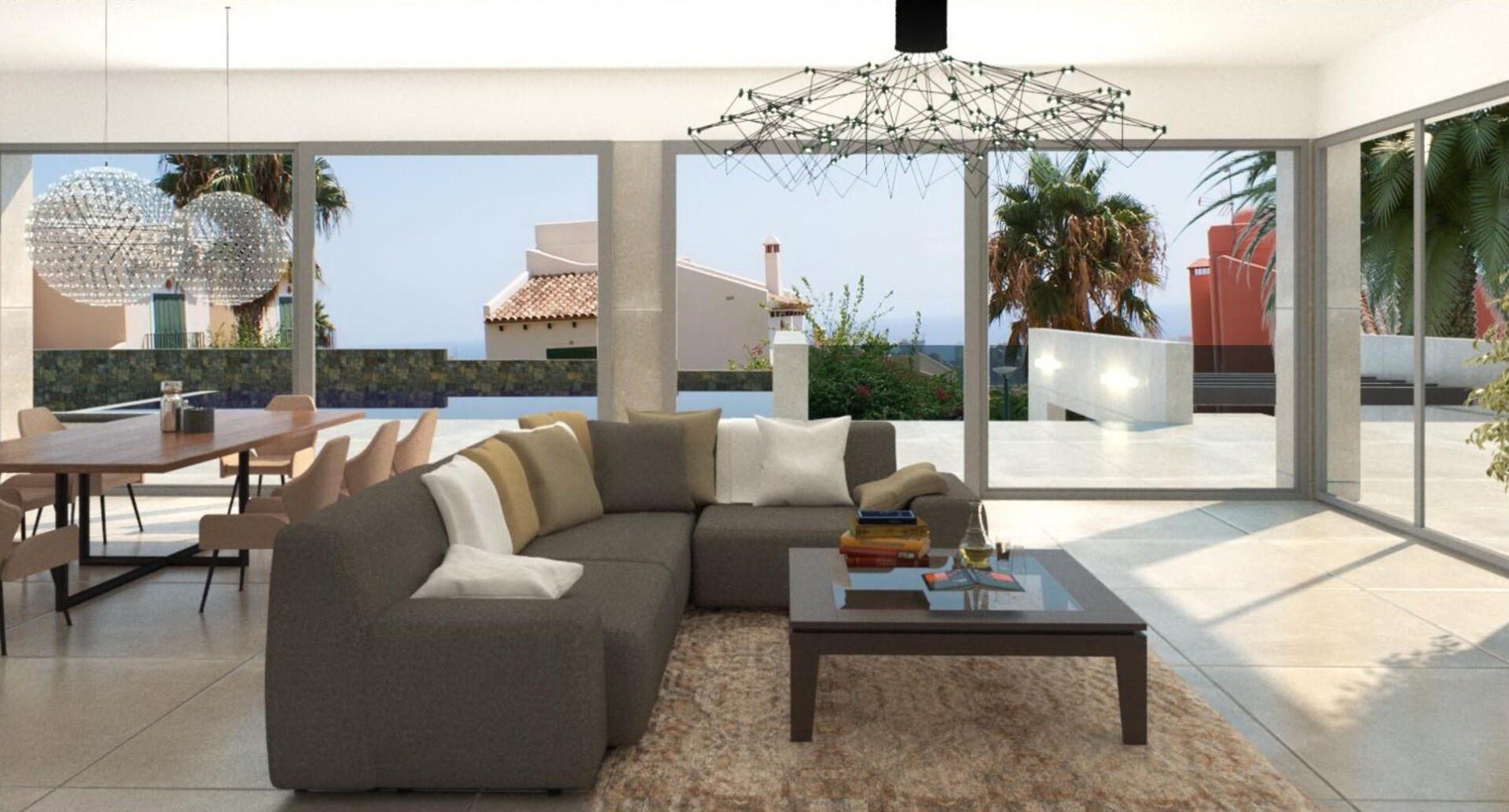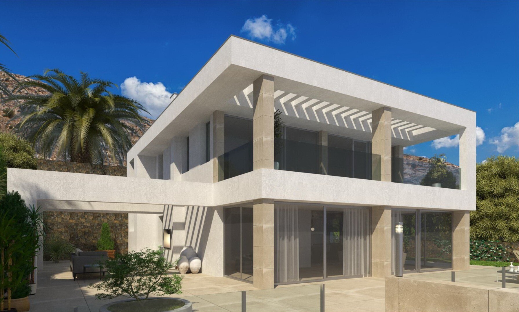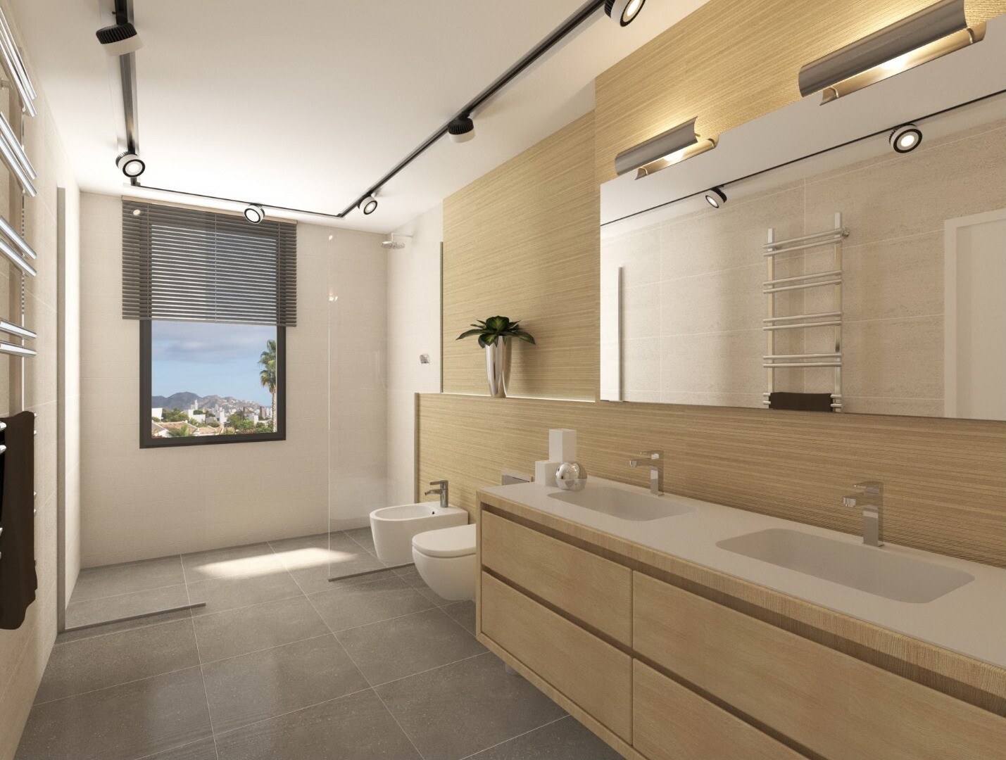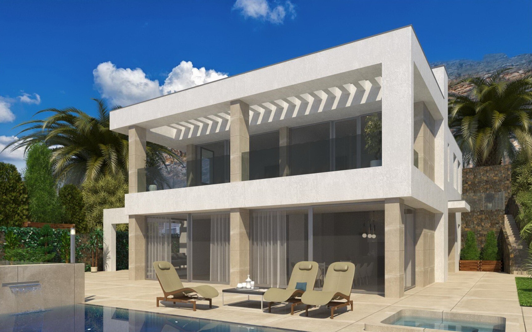We offer you a new and avant-garde single-family villa project in the exclusive area of Sierra Cortina with unbeatable views of the sea and the mountains. In one of the most popular and luxurious areas of the Costa Blanca, 5 minutes from Benidorm. Two minutes from a Michelin star restaurant and sports facilities. A panoramic view over the bay of ...La Marina Baixa and surrounded by a mountain landscape. The free height on the ground floor is 2.95 meters, and on the second floor it is 2.85 m. The surface of the villa is 634 m². Plot has an area of 704m². The villa has 4 bedrooms and 3 bathrooms distributed over several floors, and a large basement with its own bathroom. On the ground floor there is a guest bedroom, a bathroom, a multipurpose room and a large living-dining-kitchen space. The kitchen is premium class with class A appliances. In the living room it has a fireplace and access to a covered terrace with barbecue and to the large open terrace of the pool.