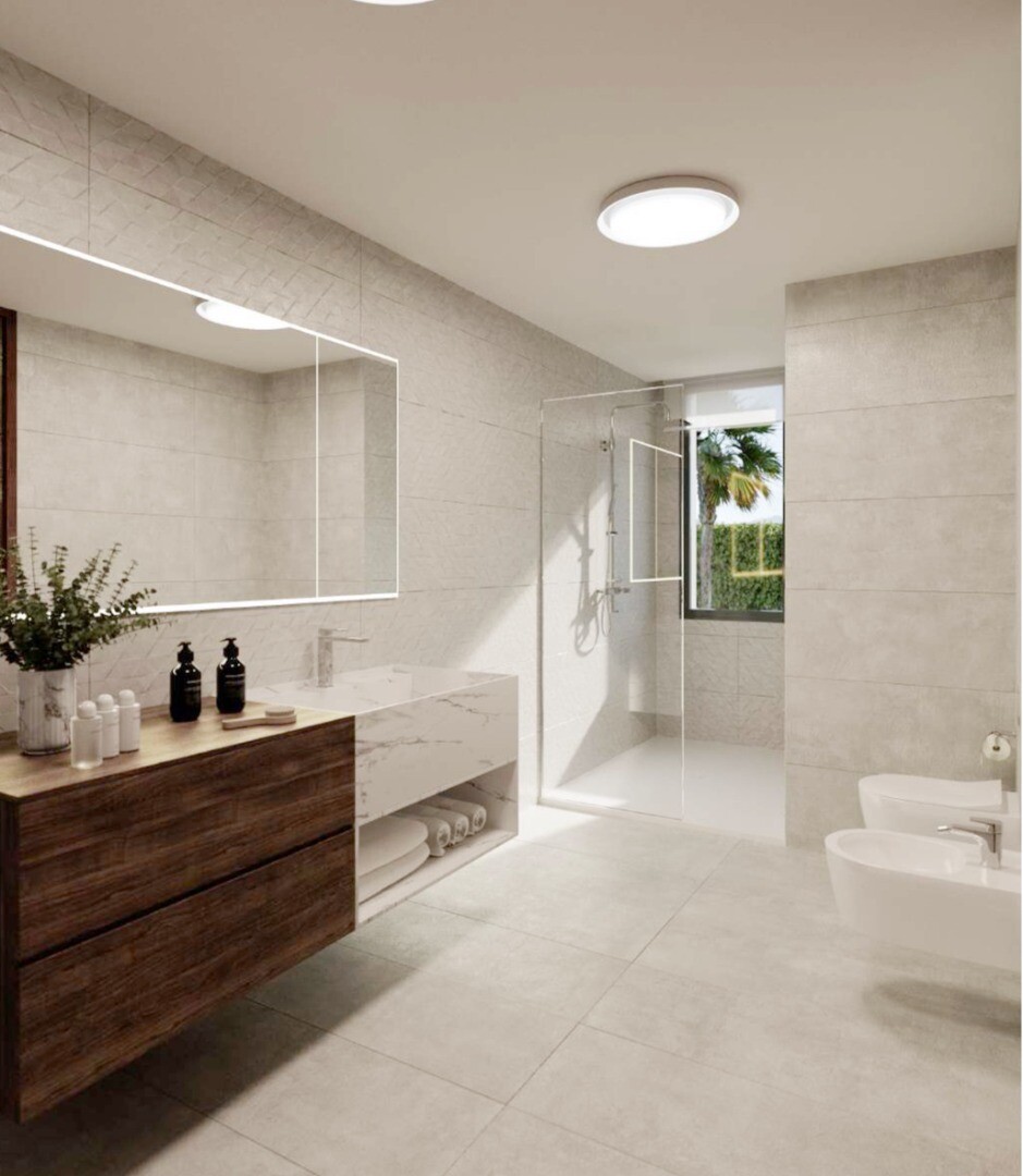 All the facilities are highly efficient. The home's energy efficiency is very high. The façade is made of Ytong blocks. The woodwork and glass have low thermal conductivity. The ducted air conditioning system includes a heat pump, and there is also underfloor heating throughout, a ventilation system with air renewal, and a heat recovery system. The entire home features LED lighting, both inside and outside.