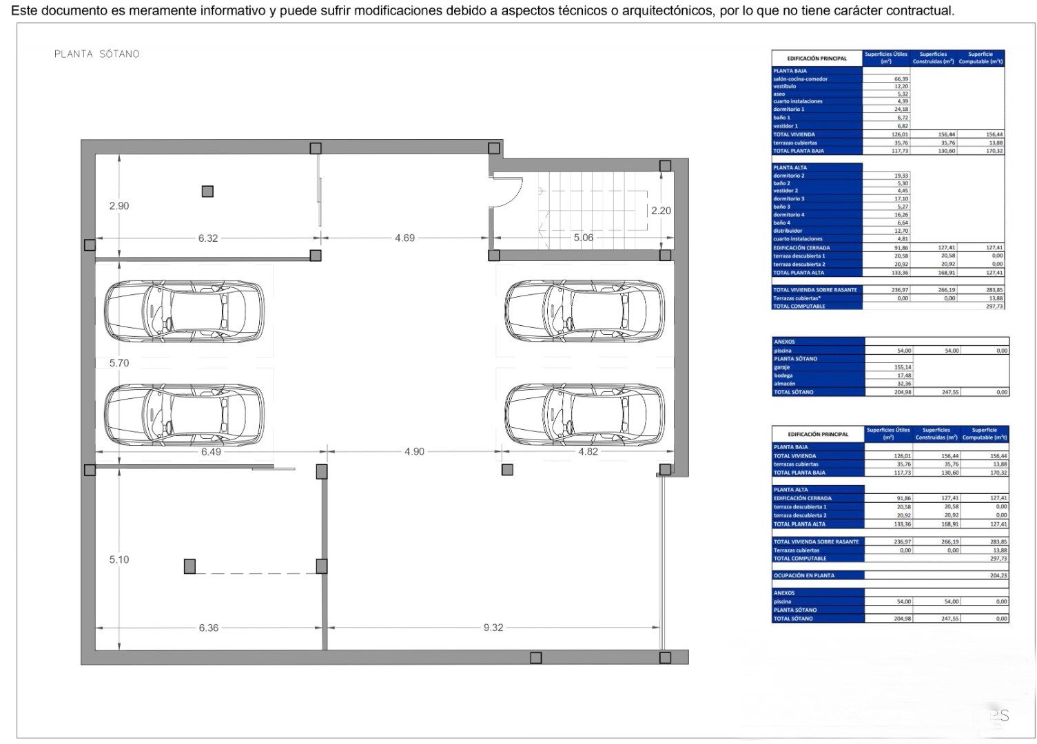 The constructed area of each villa is over 550 m², and the plot area is approximately 900 m². Each home has 300 m² on its two upper floors, plus a basement level of over 200 m² used as a garage.