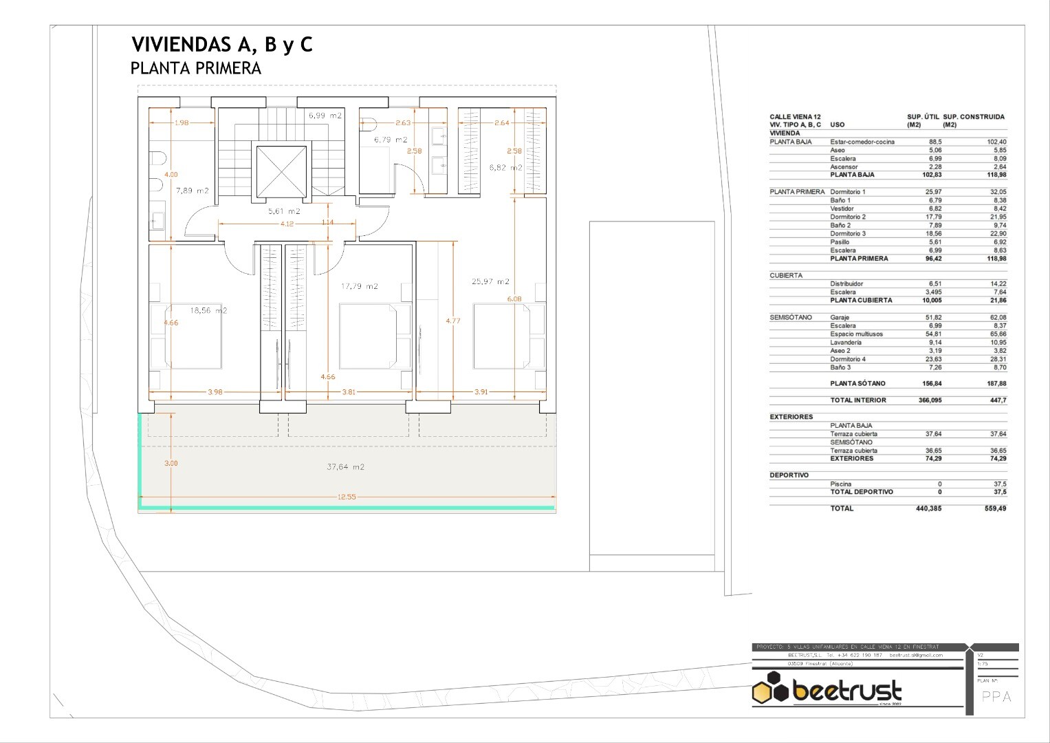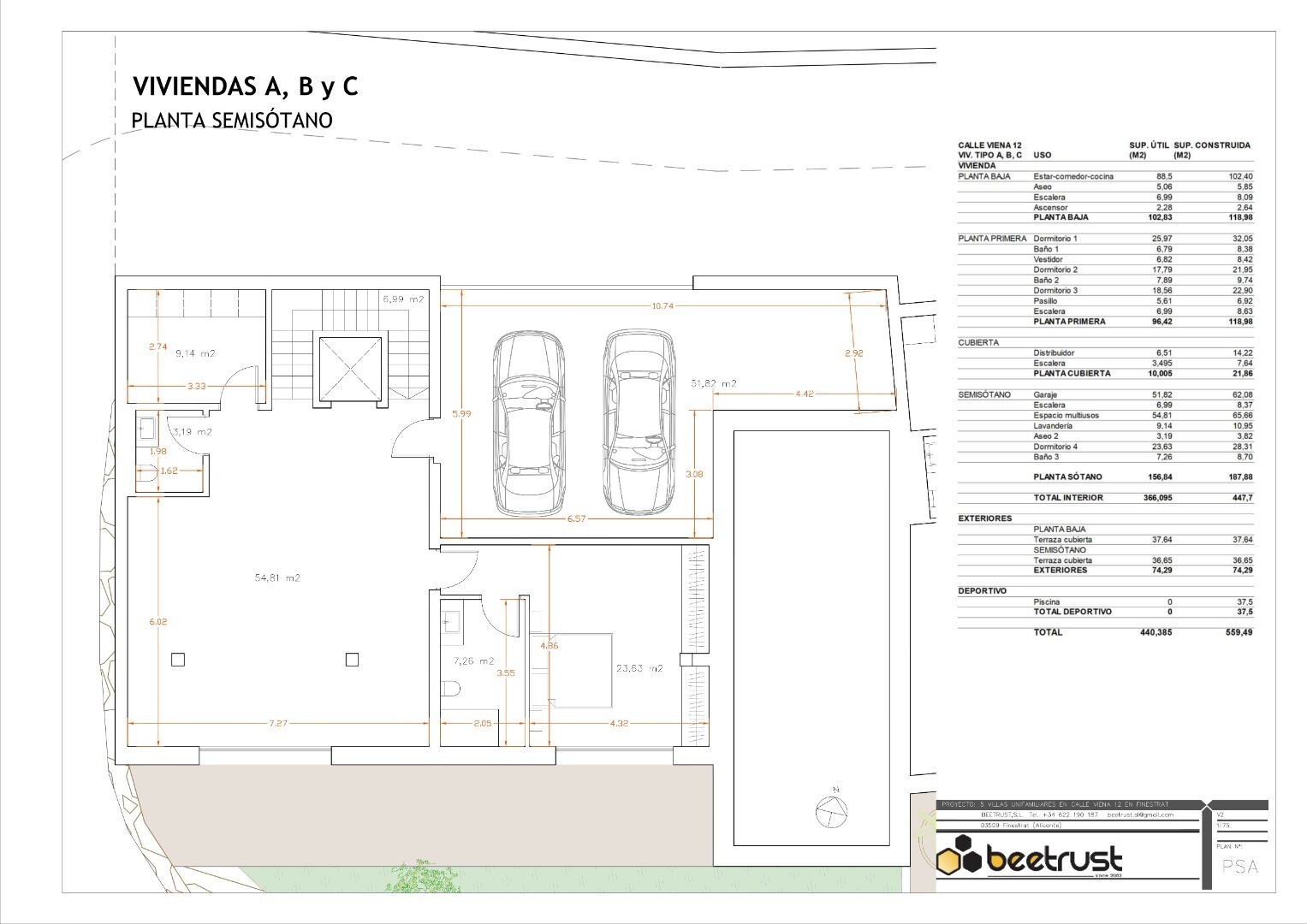 The villas comprise of: 4 bedrooms, 5 bathrooms, living-dining room-kitchen, laundry room, garage for several cars and multipurpose spaces, all distributed over 2 first floors and 1 semi-basement floor. Outside there is a swimming pool with sea views, large terraces on all floors and a large garden area with views.