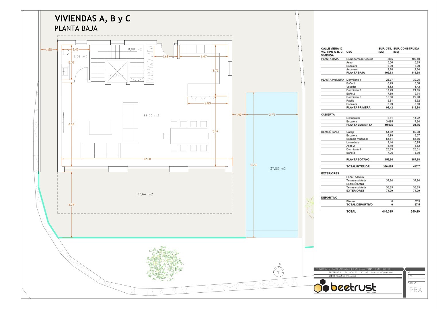 The energy efficiency of the house is very high. The façade is made of Ytong blocks. The carpentry and glass have low thermal conductivity. The ducted air conditioning installation has a heat pump and there is also underfloor heating throughout the house, a ventilation installation with air renewal and a heat recovery system. The entire house has LED lighting, both inside and outside.