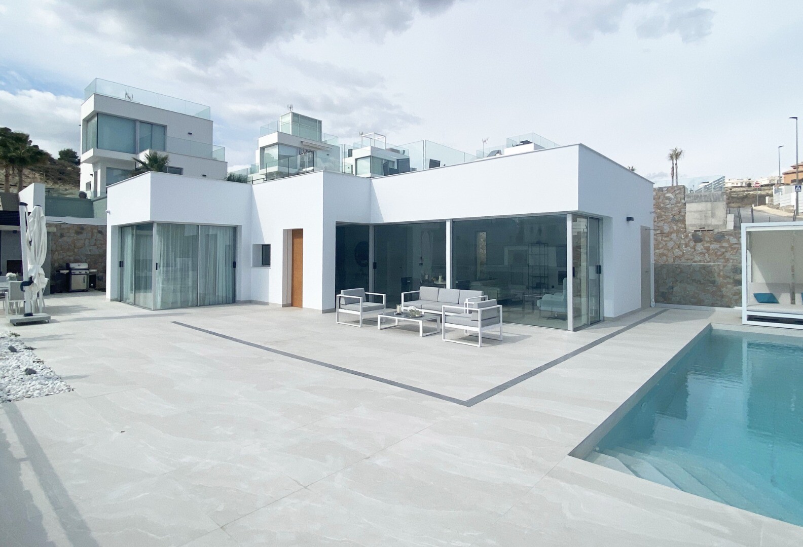 Privileged environment and only 5 km from the sea. Project that combines views of the sea, light and a special design based on straight lines, bright colored finishes and large windows. Villa type P-2: The basement is divided into 2 bedrooms, 1 bathroom and a multipurpose area (living room, cinema, gym) The main floor consists of a kitchen-living r...oom of 44 m2 approx. with access to terrace, 3 double bedrooms and 2 full bathrooms (1 en suite). It also includes, Pool, Garden with trees, gazebo and parking for 2 cars.