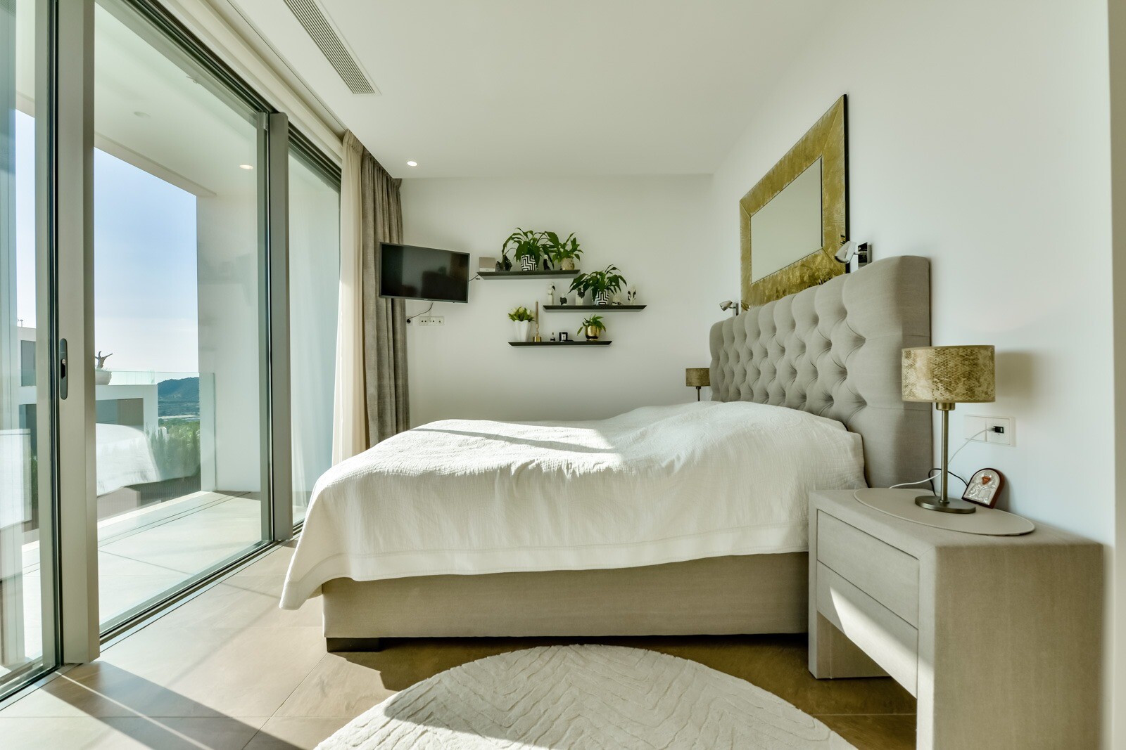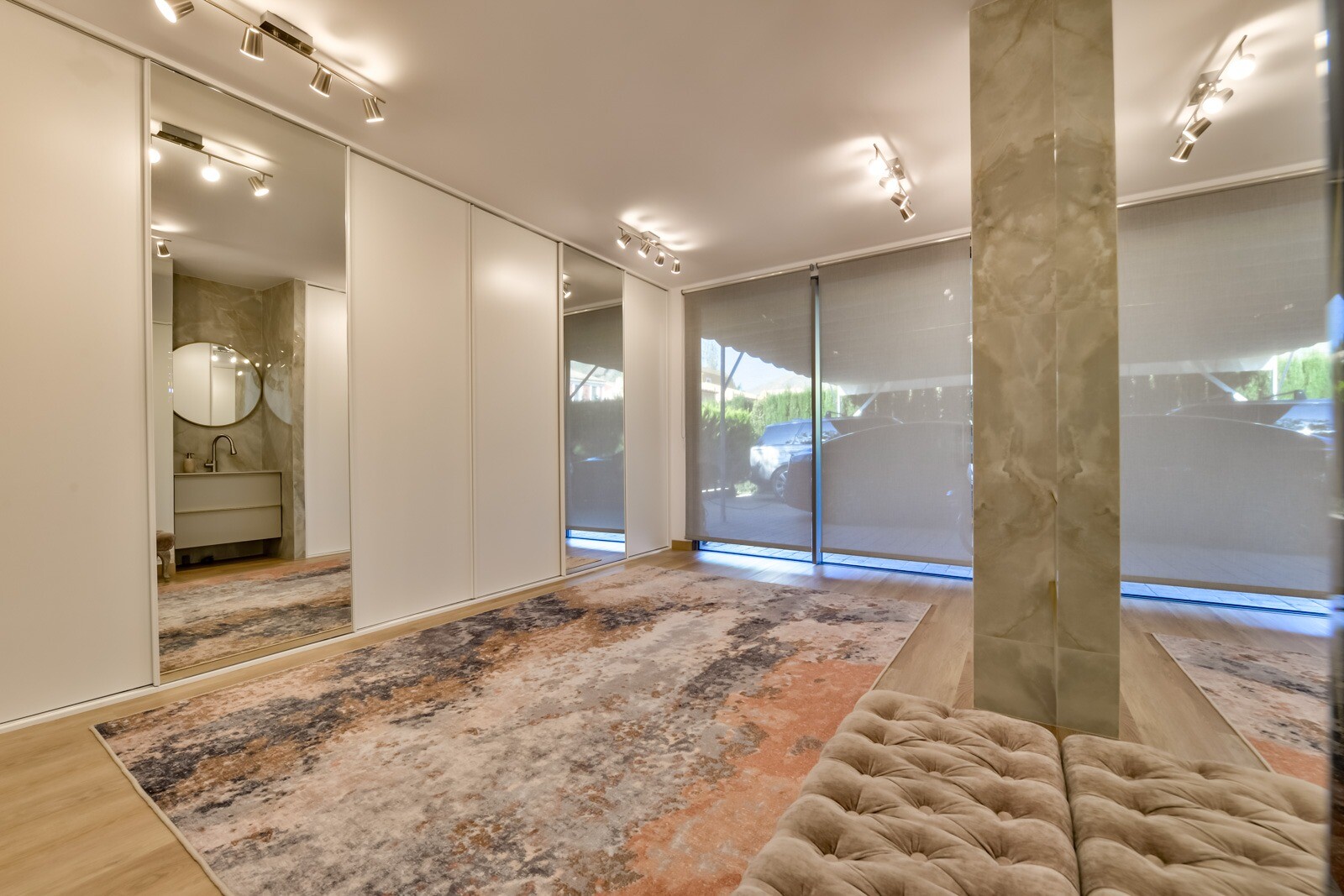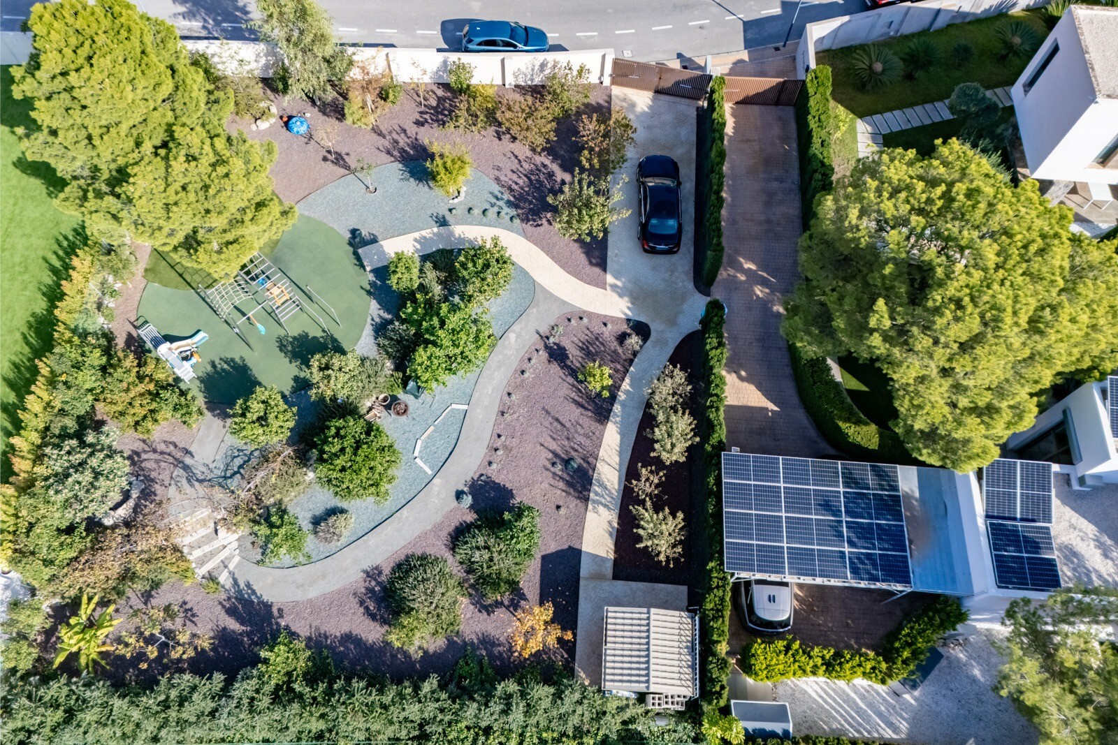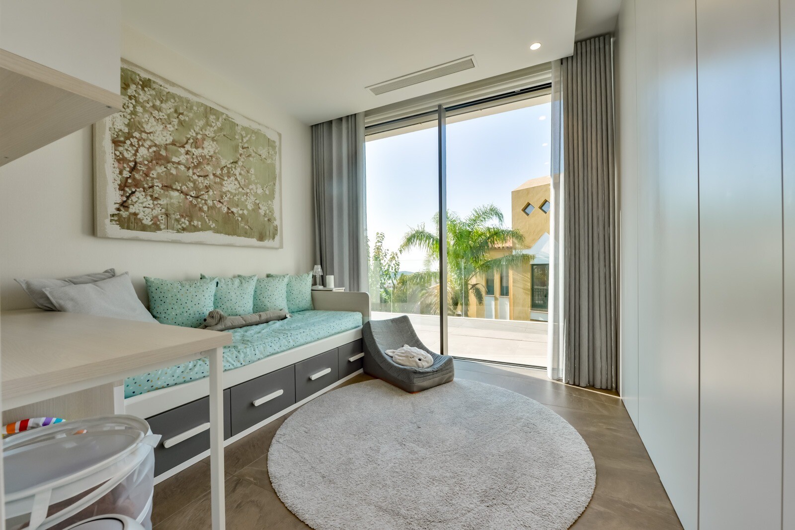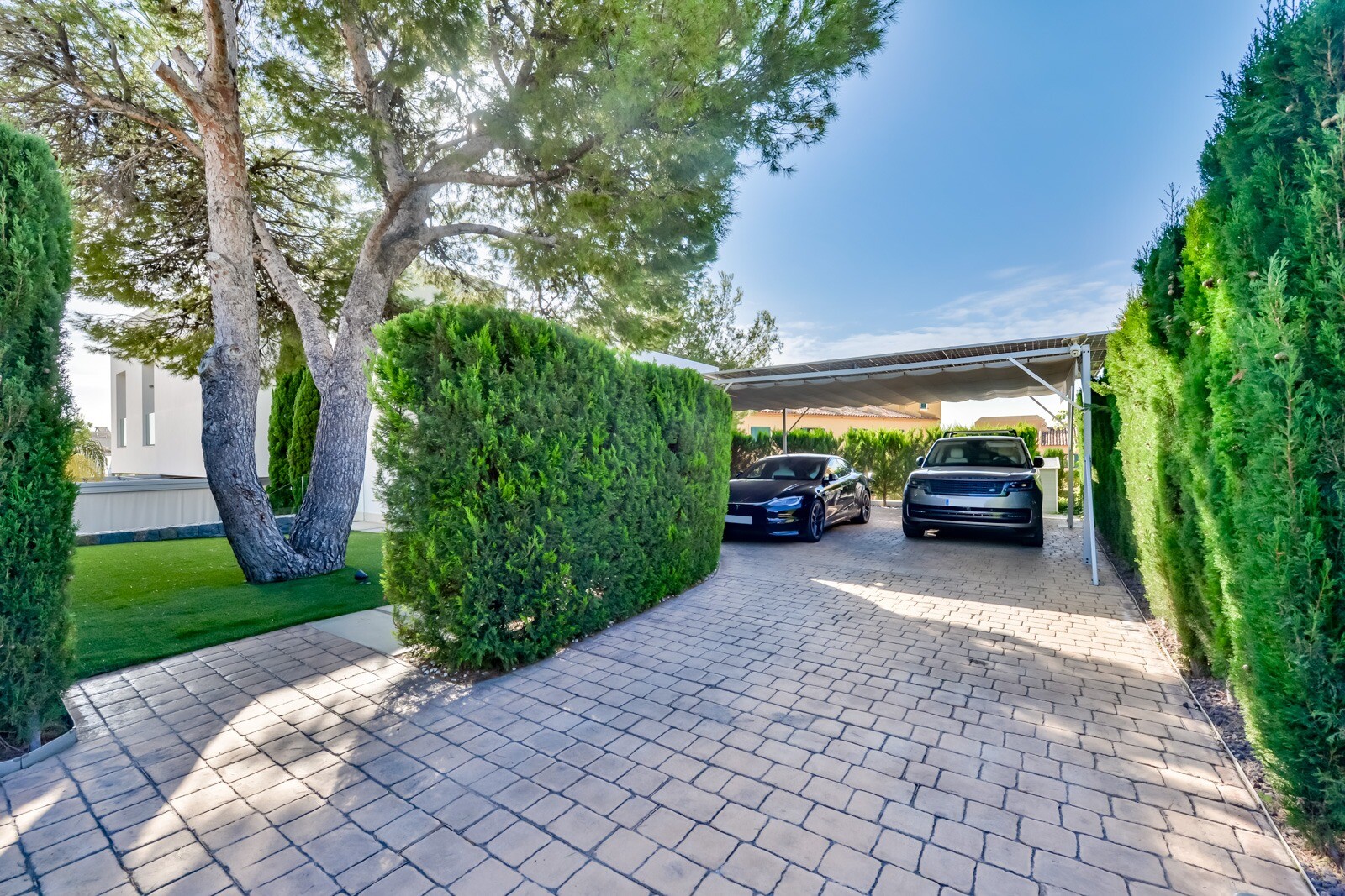 A magnificent house in a prestigious urbanization with absolutely everything to live or relax in a privileged location. The 800 m2 plot is accessed through a covered parking lot and garage. There is the possibility of purchasing the villa with a 700 m2 plot, with an adjoining garden with fruit trees and a children's sports center, in which case the... villa would cost 1,820,000 euros. The 379 m2 house has: On the ground floor. a large living room with direct access to the pool and a large open-plan kitchen, comfortable for the owners of the house. From this floor there is access to the pool and the covered summer terrace/kitchen, covered on the sides with fabric, in winter it becomes a cozy place, it can also be used for barbecues. Going up the internal stairs to the upper floor we see the master bedroom with open sea views, equipped with an en-suite bathroom, dressing room and private terrace. There are also 2 more bedrooms with built-in wardrobes, a large terrace and a bathroom. The basement has natural light that floods the English patio and the stairs leading to the plot, there are two large bedrooms and space for a gym with sauna and bathroom. The house has home automation, underfloor heating, ducted air conditioning and automatic blinds. There are solar panels on the roof of the house and in the parking lot.
