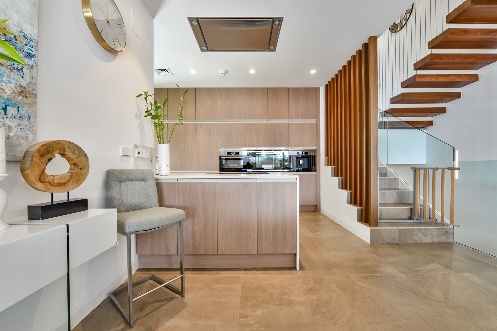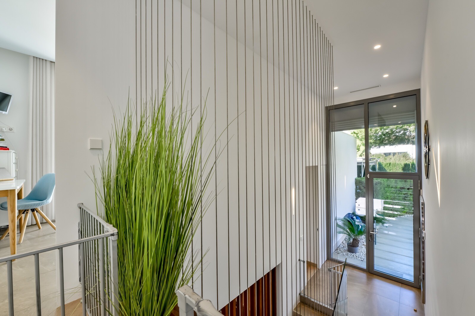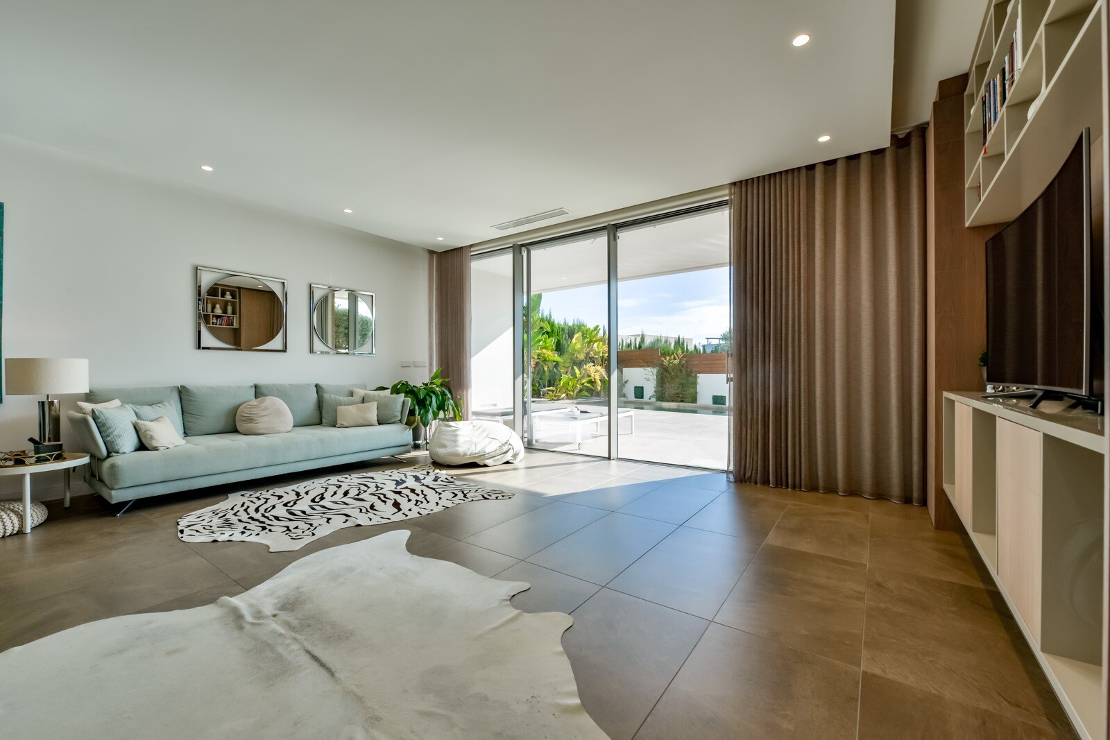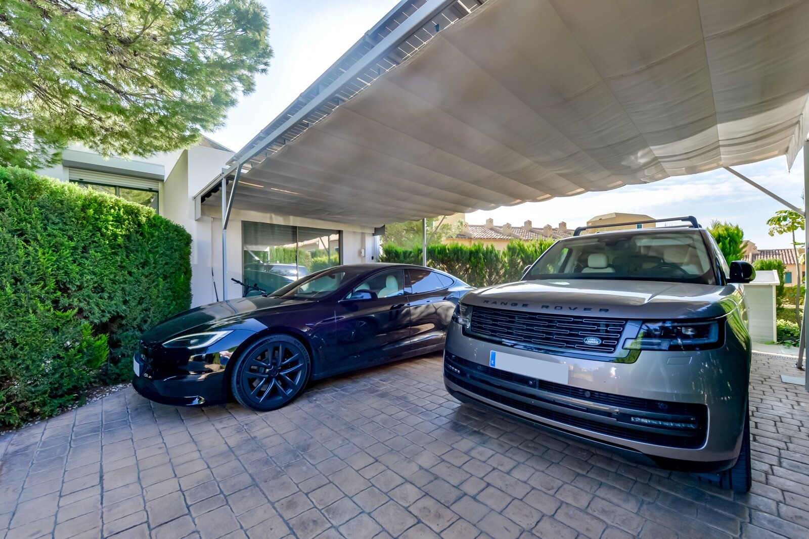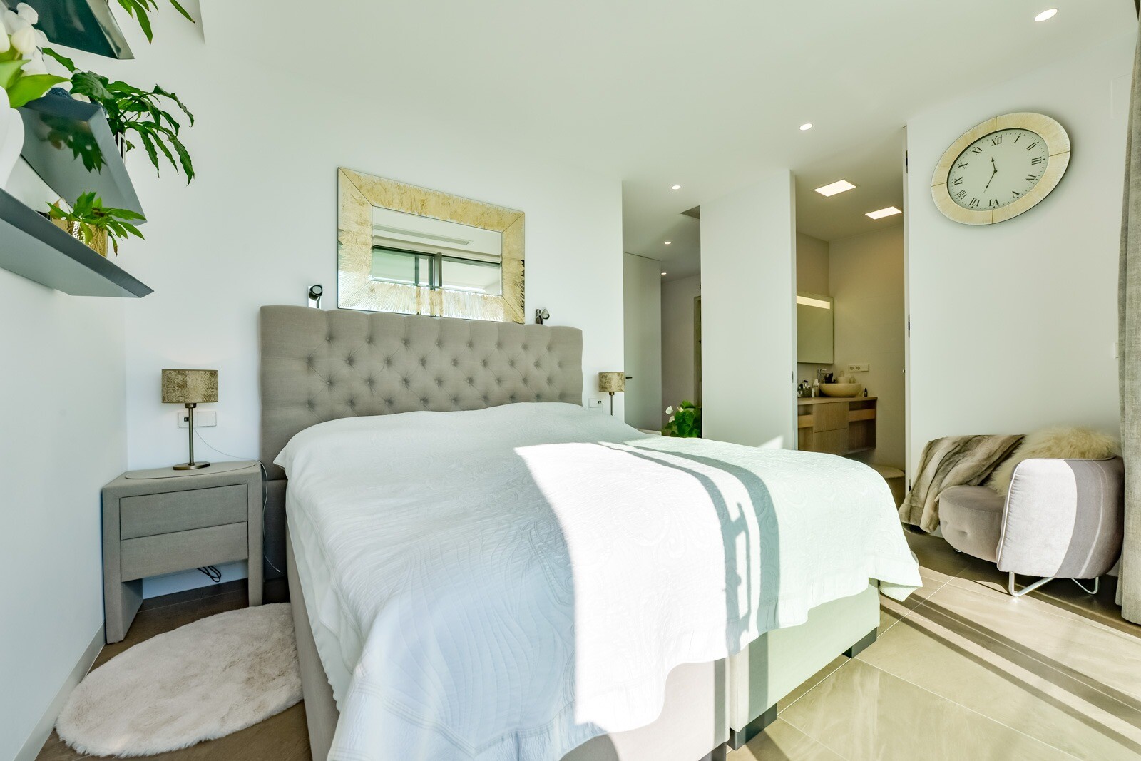 A magnificent house in a prestigious urbanization with absolutely everything to live or relax in a privileged location. The 800 m2 plot is accessed through a covered parking lot and garage. There is the possibility of purchasing the villa with a 700 m2 plot, with an adjoining garden with fruit trees and a children's sports center, in which case the... villa would cost 1,820,000 euros. The 379 m2 house has: On the ground floor. a large living room with direct access to the pool and a large open-plan kitchen, comfortable for the owners of the house. From this floor there is access to the pool and the covered summer terrace/kitchen, covered on the sides with fabric, in winter it becomes a cozy place, it can also be used for barbecues. Going up the internal stairs to the upper floor we see the master bedroom with open sea views, equipped with an en-suite bathroom, dressing room and private terrace. There are also 2 more bedrooms with built-in wardrobes, a large terrace and a bathroom. The basement has natural light that floods the English patio and the stairs leading to the plot, there are two large bedrooms and space for a gym with sauna and bathroom. The house has home automation, underfloor heating, ducted air conditioning and automatic blinds. There are solar panels on the roof of the house and in the parking lot.