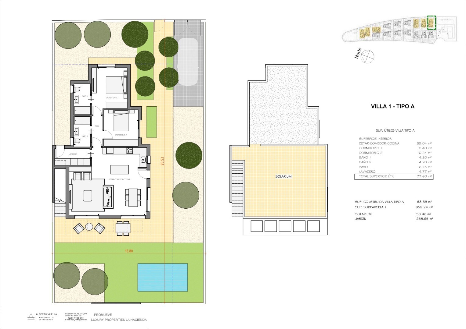 This villa has the perfect mix between modern design, comfort and nature. These unique 2 bedroom, 2 bathroom villas with private pool 2.4x6m are designed to serve as a permanent home or as a holiday home. They are built on plots of +/- 300m2 and have a parking space and a roof solarium where you can enjoy the wide view of Hacienda del Alamo resort....