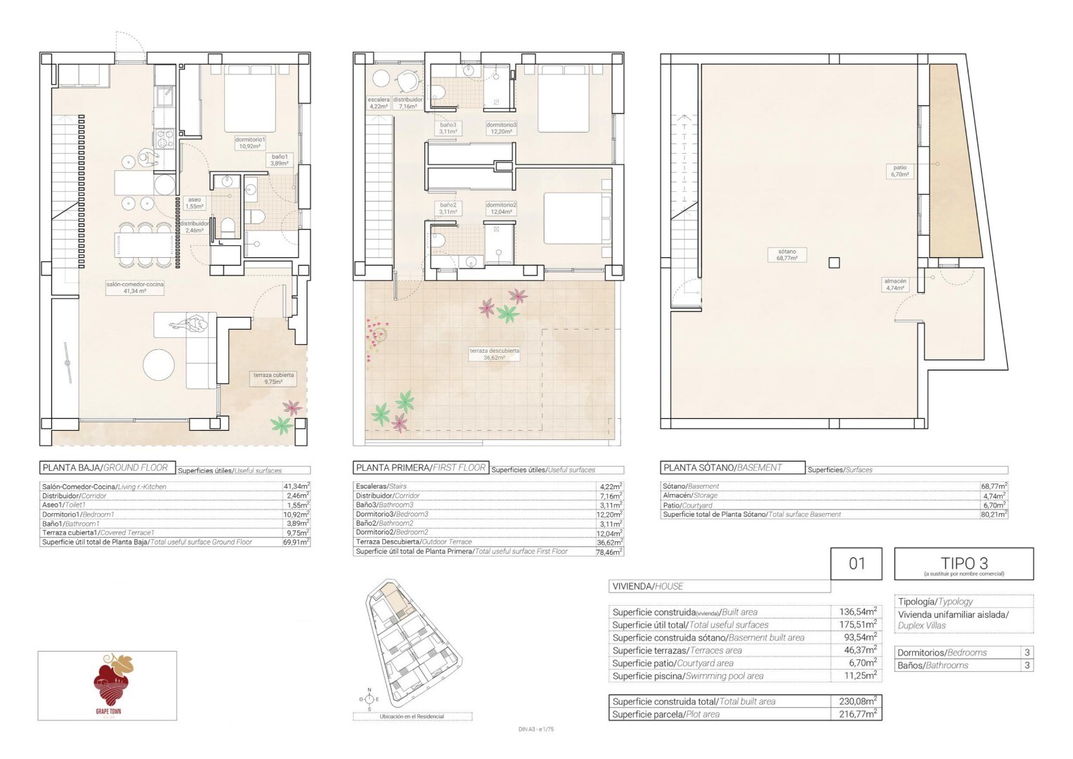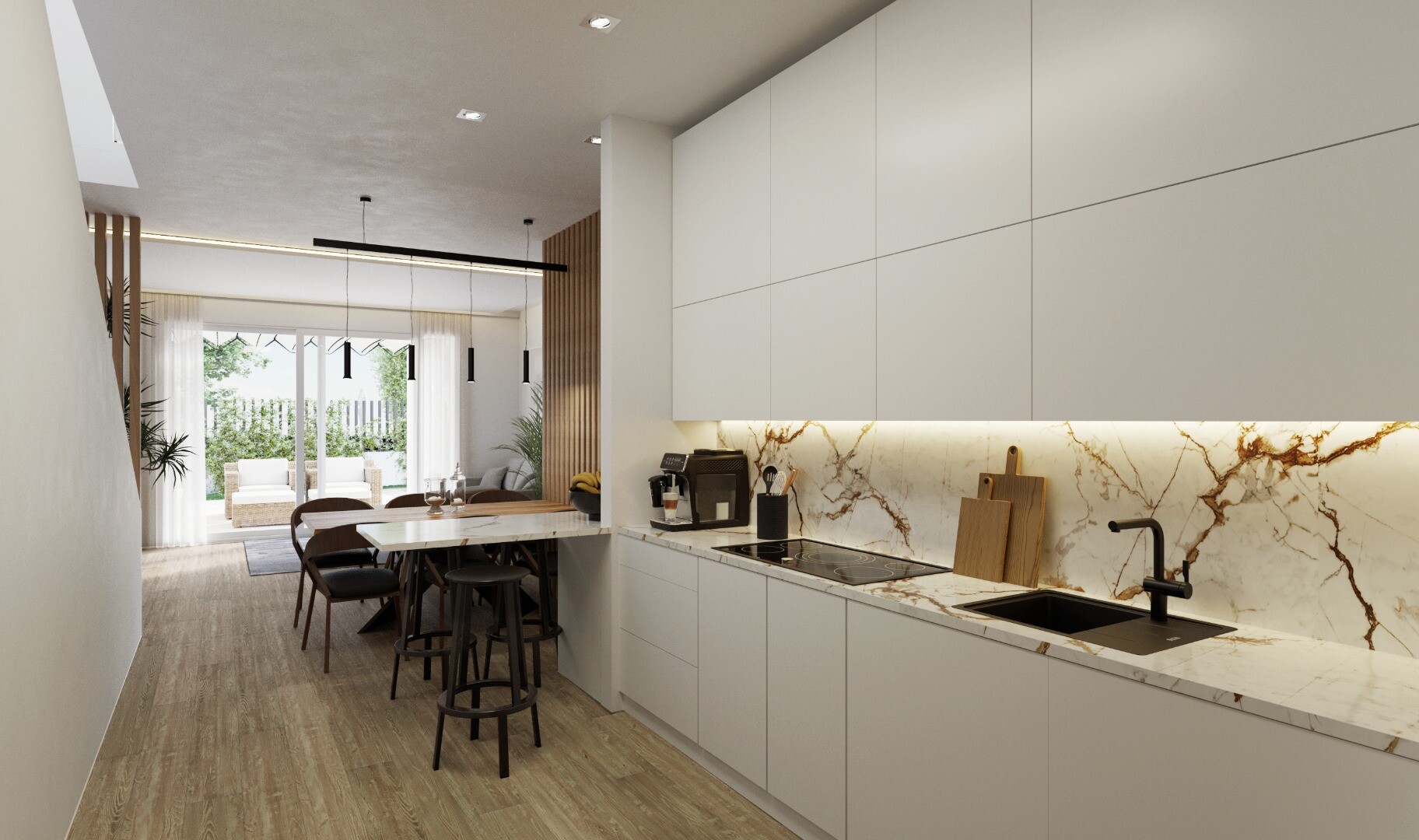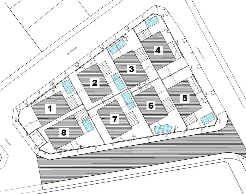 Small plot of 8 detached villas on private plot, consisting of two floors and a basement with English patio. Open kitchen, living and dining room, guest toilet and bedroom with bathroom en suite, on the ground floor. Two bedrooms with bathroom en suite and large terrace of 36m2, on the first floor. Private garden with swimming pool and barbecue are...a. Private parking space within the plot. Charging socket for electric cars. Individual private access from the street. Thermal and acoustic insulation in accordance with the new Technical Building Decree. White PVC exterior carpentry and shutters. Interior carpentry and cupboard fronts in smooth white lacquered panels. Bathrooms and kitchens tiled from floor to ceiling with top quality tiles/gress. Top quality sanitary facilities and taps, toilet with built-in reservoir. Porcelain stoneware or laminate floors in the house. Reinforced entrance door. Fully equipped kitchen, upper and lower cabinets and granite worktop or synthetic agglomerate (silestone or similar). Electrical installation according to R.E.B.T. (Low Voltage Electrotechnical Regulations) with high electrification (9.2 KW). Smooth plasterwork on ceilings, removable ceilings in bathrooms with air conditioning. Ducted air conditioning system (with heat pump) on the ground floor and first floor. Forced ventilation system with heat recovery. Good ventilation of homes ensures good indoor air quality. Forced ventilation with heat recovery improves well-being and comfort in the home. The system recovers the heated indoor air, heats the cold air that comes from outside in winter and cools the warm air.