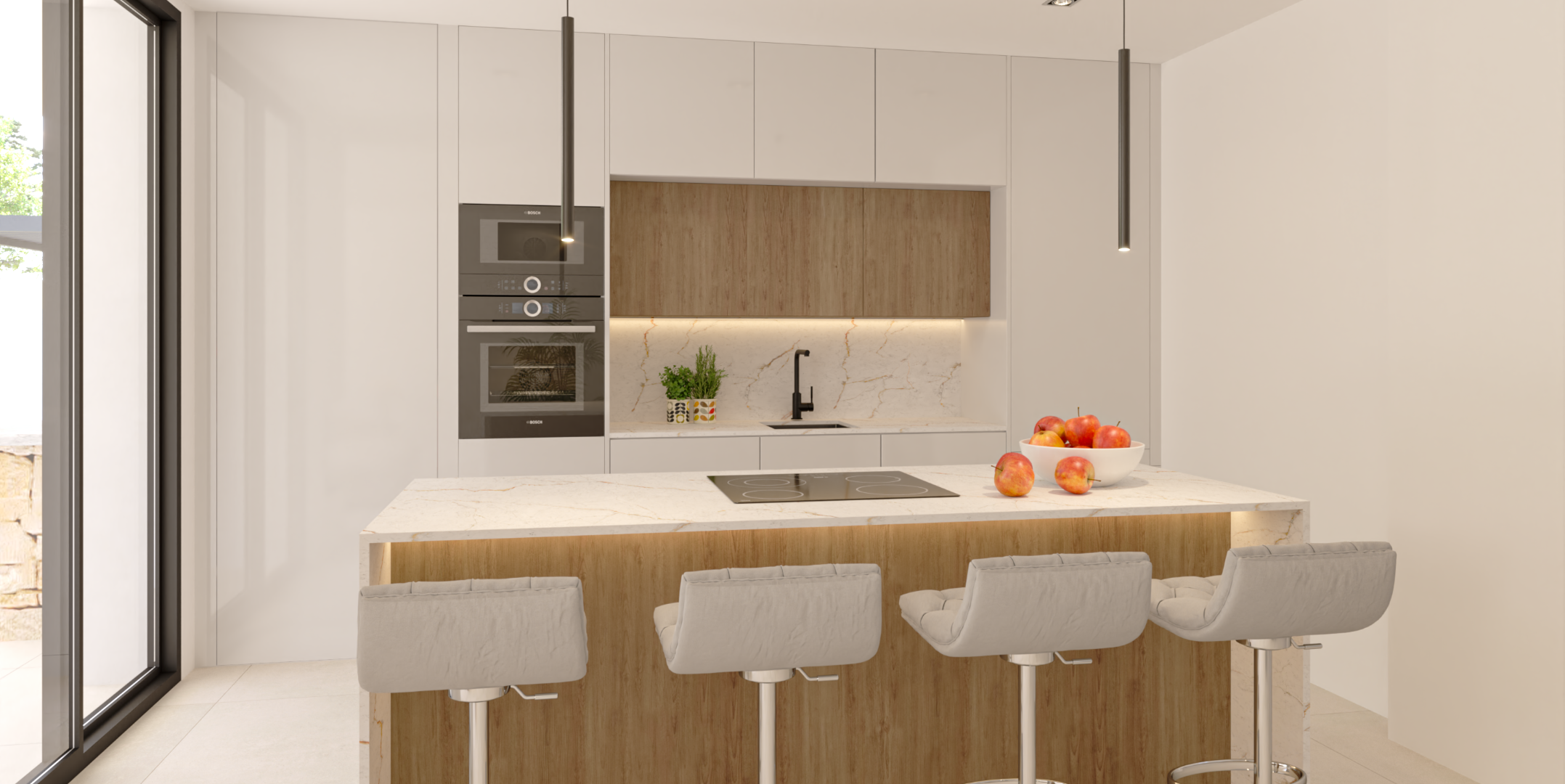 Enter a spacious home conceived and designed to be an ideal, bright, and spacious residence.