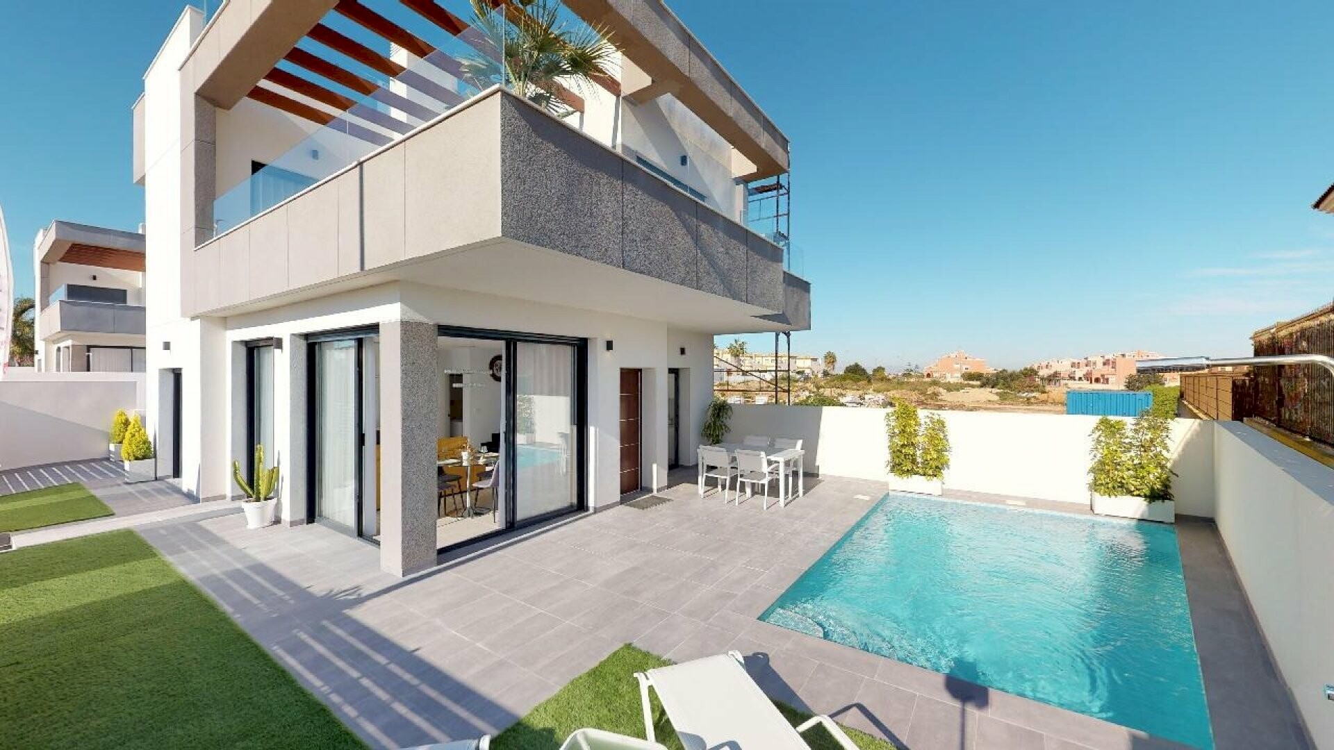 New Promotion Independent Chalets in Los Montesinos, 30 minutes from Alicante airport, near the magnificent beaches of Guardamar del Segura, golf courses, shopping centers. The Residential is composed of 6 independent villas with private pool, in the air has a multitude of services. Very bright and warm distribution. Fully furnished kitchen with ap...pliances, garden, living room, two bathrooms and toilet, master bedroom with bathroom and dressing room. Terrace, individual pool and solarium. With pre-installation of air conditioning, PVC double glazing carpentry, all with exclusive finishes