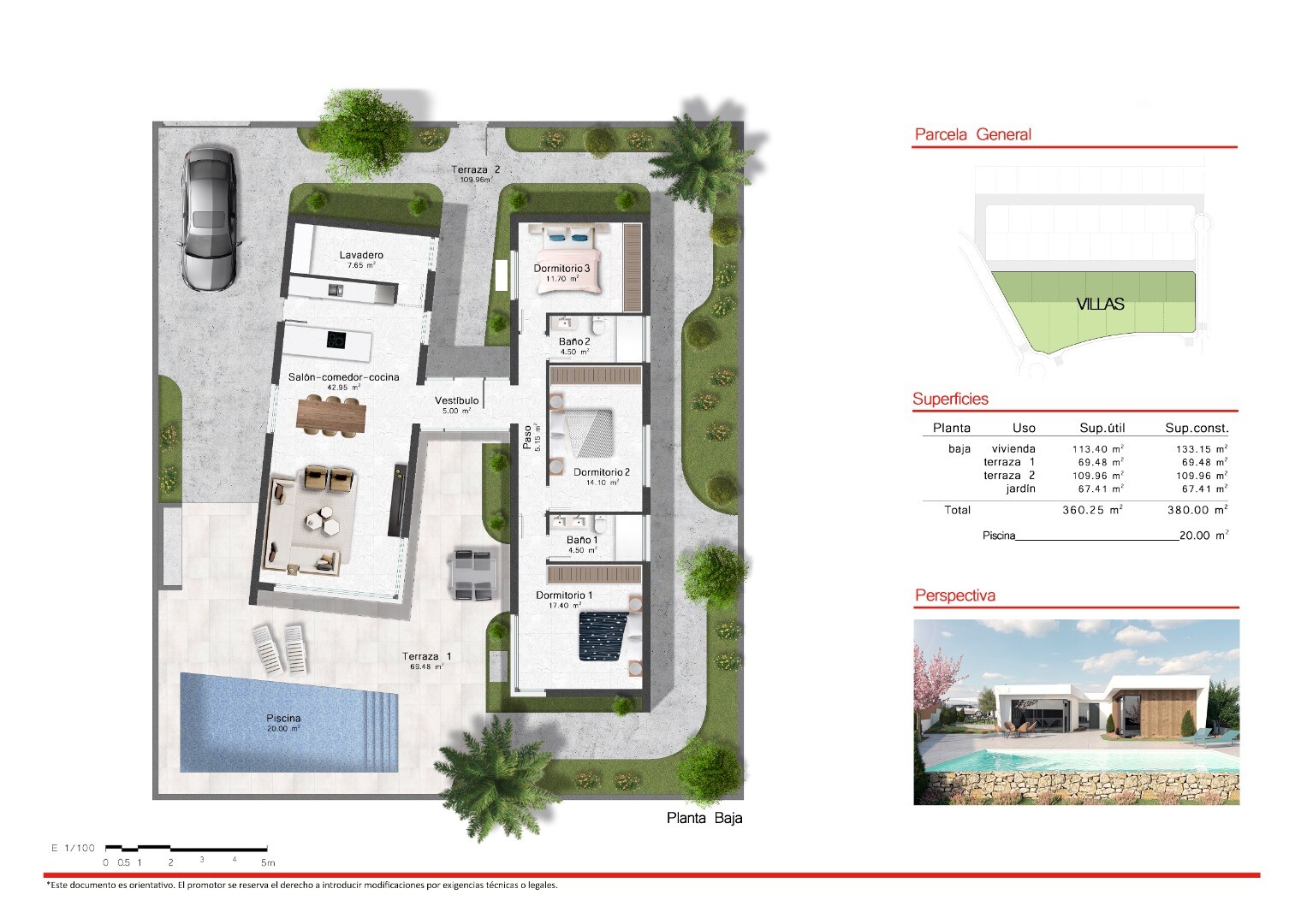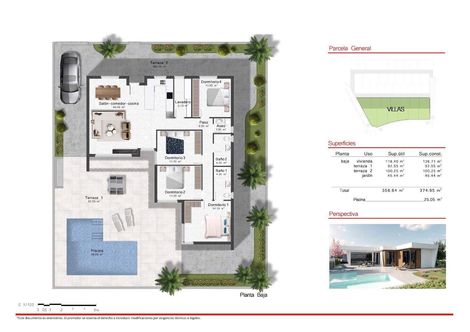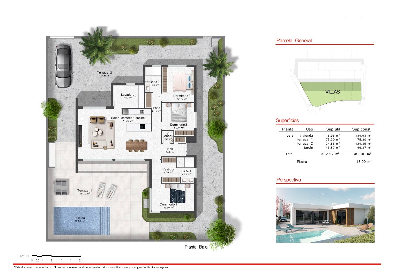 Possibility to choose from 5 different models of villas. 3 or 4 bedroom villas and 3 bedroom villas with closed garage instead of private parking. Plots to choose from 424m2 to 733m2. Corvera airport is only 10km away.