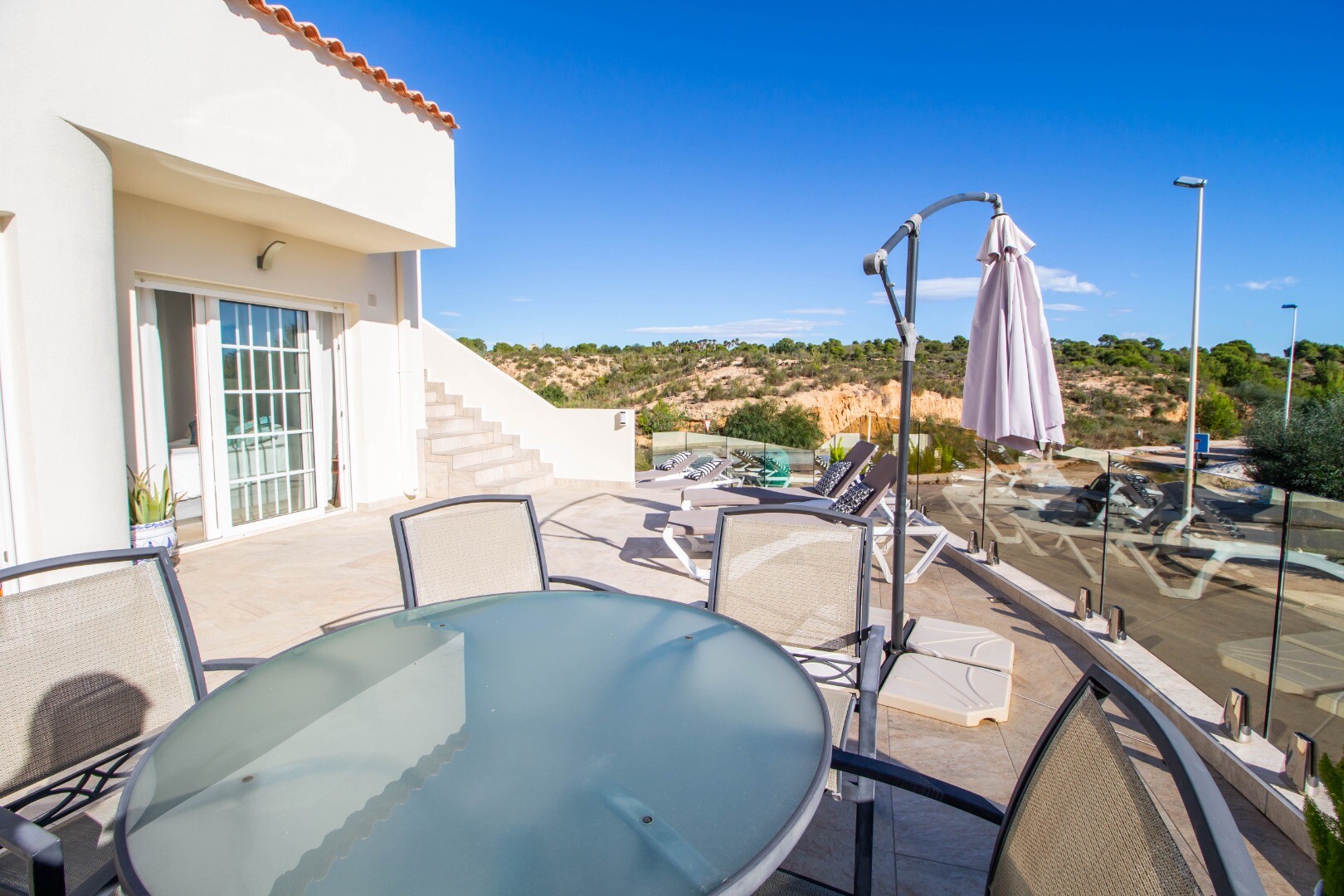 The house is located in one of the best areas of the exclusive Las Ramblas golf course, a few minutes walk from the LA FUENTE shopping center (with bars, restaurants, pharmacy, bus stop...) and the Villamartín and Campoamor golf courses. Only 5 km from the paradisiacal beaches and the Dehesa de Campoamor urbanization (with all its services: marina, supermarkets, pharmacy, health center, restaurants, tennis and paddle club ……..). With an impressive green area that runs from the Las Ramblas golf course to the beach.
