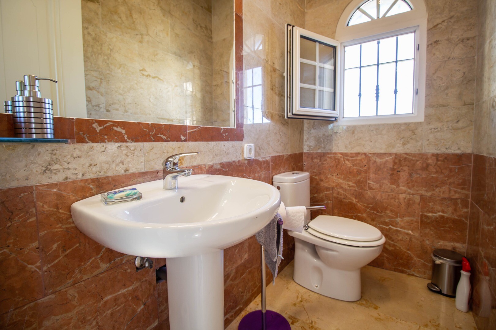 It is distributed on two floors: the ground floor has: an office, 4 bedrooms, 2 bathrooms and a toilet. Three bedrooms have direct access to the terrace and views.