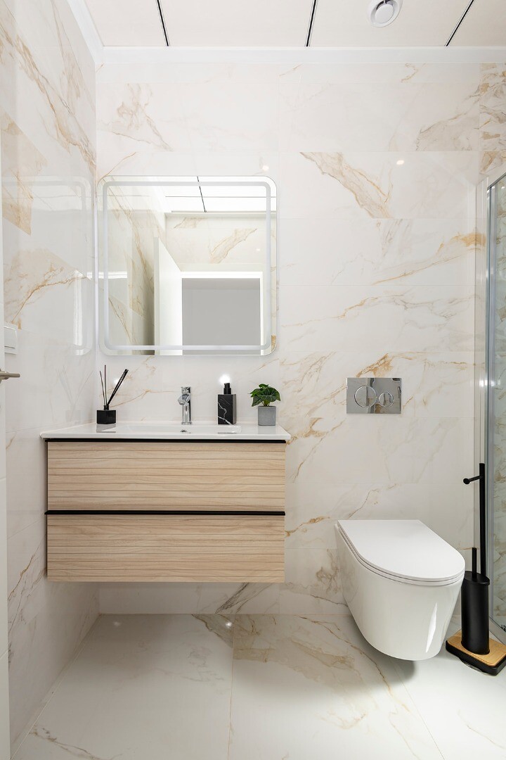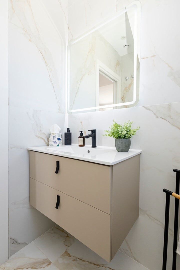 The property features 3 spacious bedrooms, each with its own en-suite bathroom with underfloor heating, plus an additional guest toilet. The bright and open liv...ing-dining room connects seamlessly to a fully fitted modern kitchen, offering a functional and comfortable living space.