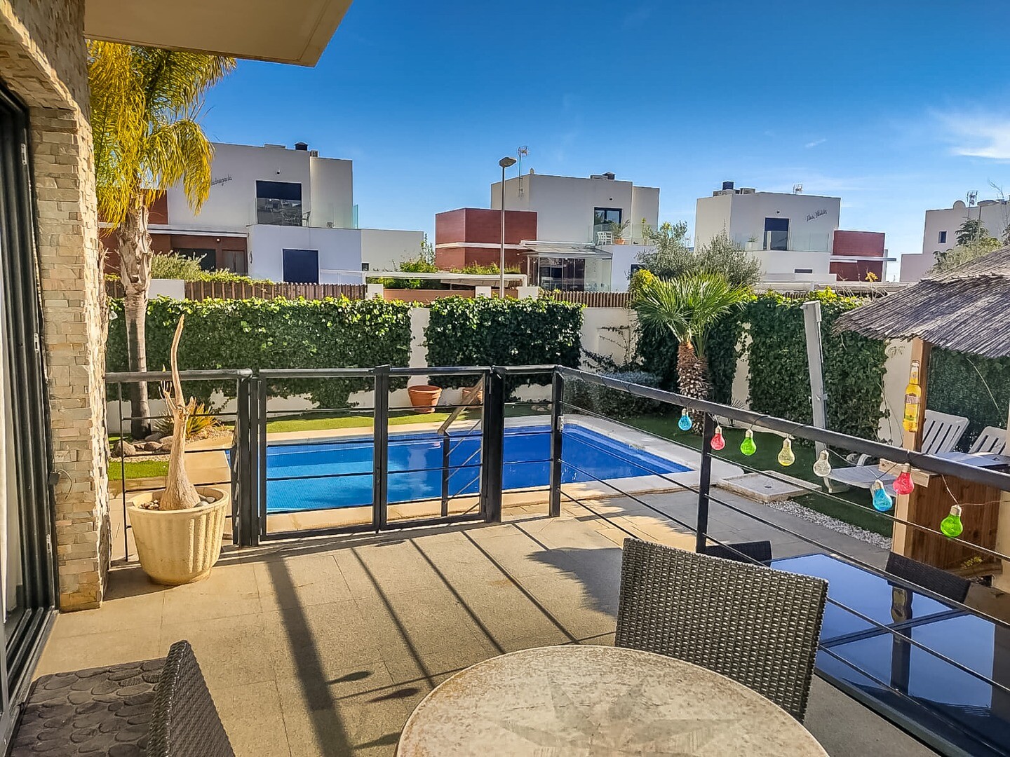 This modern villa is located in a quiet urbanization in Polop and sits on a 400 m² plot featuring a private swimming pool, low-maintenance garden, and a cozy barbecue area—perfect for outdoor living.
