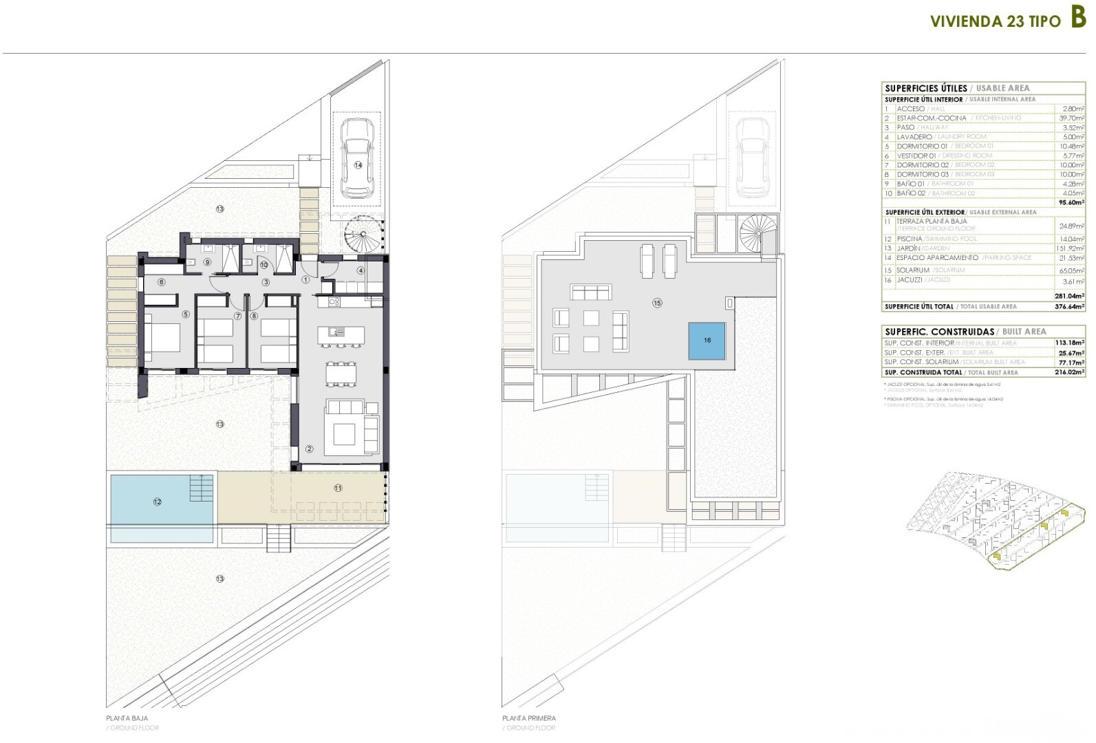 The re...sidences are designed to enjoy the outdoors, with not only terraces but also gardens, porches, and sun terraces in each home. Furthermore, most of the houses in Polop offer the option of adding a private pool (infinity or shallow, depending on the terrain). Alternatively, those who opt for a single-story home can choose to install a Jacuzzi in the sun terrace.