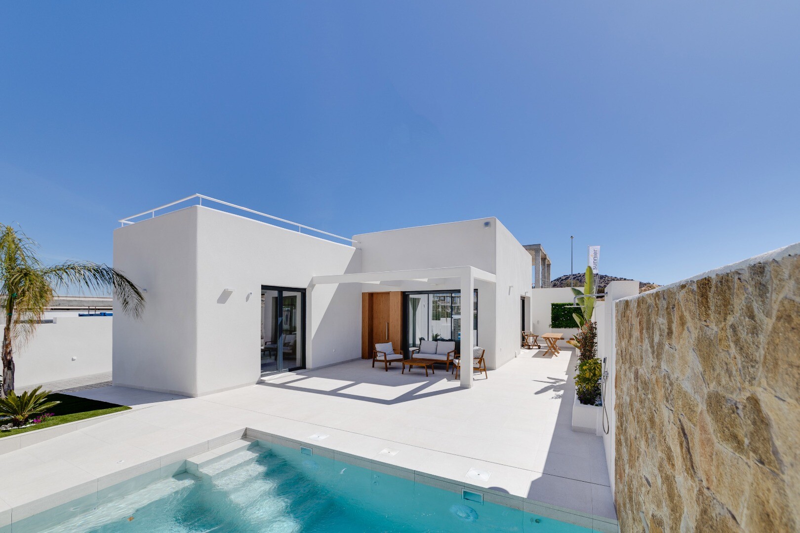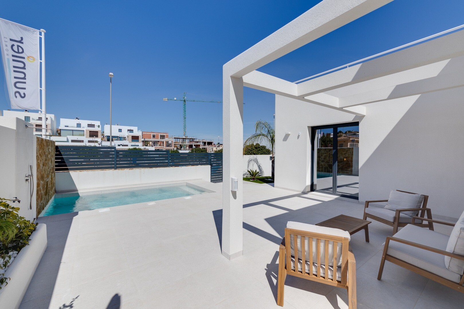 This modern detached villa in La Marquesa Golf, Rojales, offers a stylish and functional design. With 101 m² built on a plot of 307 m², this property has 2 bedrooms and 2 bathrooms. The living-dining room is perfectly integrated with an open plan kitchen, equipped with high quality furniture and appliances. The villa includes a 101 m² basement, pro...viding additional space for storage or customisation according to your needs. In addition, there is a 60 m² solarium, ideal for relaxing and enjoying the Mediterranean climate. The spacious terraces and garden offer a perfect setting for outdoor living. The property has parking on the plot and a private swimming pool, ideal for cooling off on hot days. Equipped with aerothermal heating and air conditioning, the villa guarantees comfort and energy efficiency. Its location is excellent, just 600 metres from La Marquesa Golf and 10 minutes from the beautiful beaches of Guardamar. This villa in La Marquesa Golf combines luxury, comfort and a privileged location, perfect for those looking for a relaxed and sophisticated lifestyle.