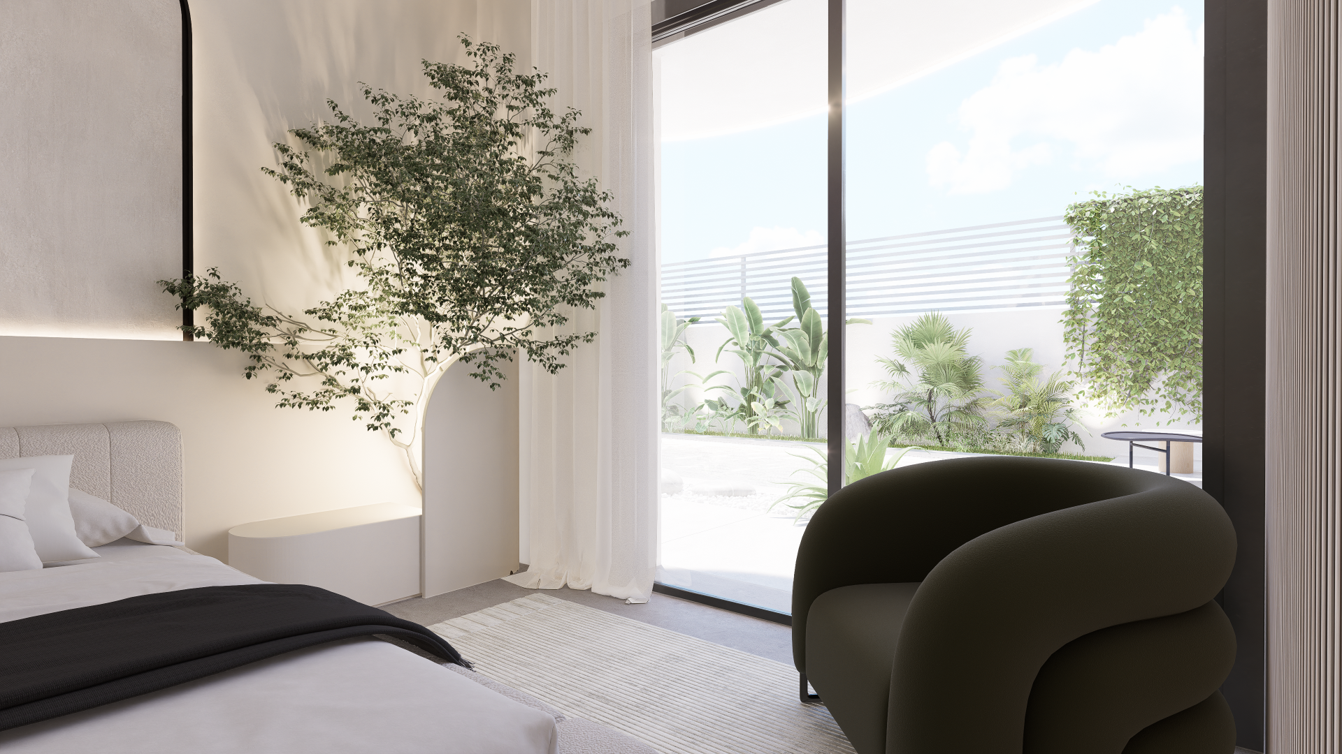 The villa will feature three bedrooms, including a master bedroom with en-suite bathroom and dressing room, providing a private and comfortable space. In additio...n, there will be two bathrooms designed with high quality finishes and underfloor heating for comfort.