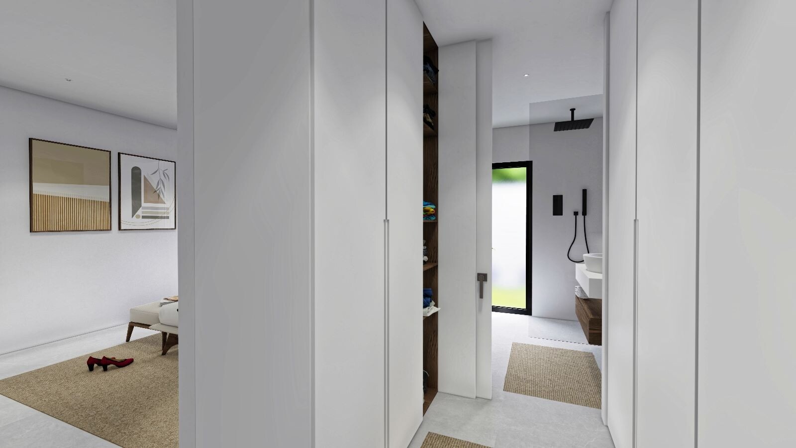 Within the modern style we opted for a large format house with extra high ceilings and a basement area which enjoys natural light and a great relaxation area thanks to the English patio.