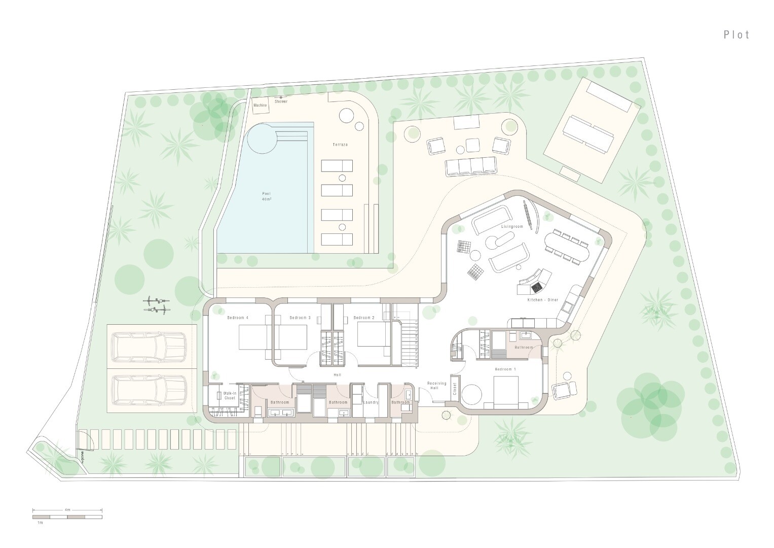 A luxurious 330m² single-story villa with 4 spacious bedrooms and 4 elegant bathrooms. Featuring organic curves, refined interiors, and striking architecture, this villa sits on an 870m² plot with panoramic views, a 40m² swimming pool, and a spacious basement with parking for 2 or more cars, or two cars with an additional bedroom and bathroom. Loca...ted in the prestigious La Marina development, overlooking the valley, surrounded by nature, pine forests, and the Rio Segura River. Just minutes from shops, hiking trails, and 7 Blue Flag beaches – perfect for lovers of luxury, nature, and Mediterranean tranquility.