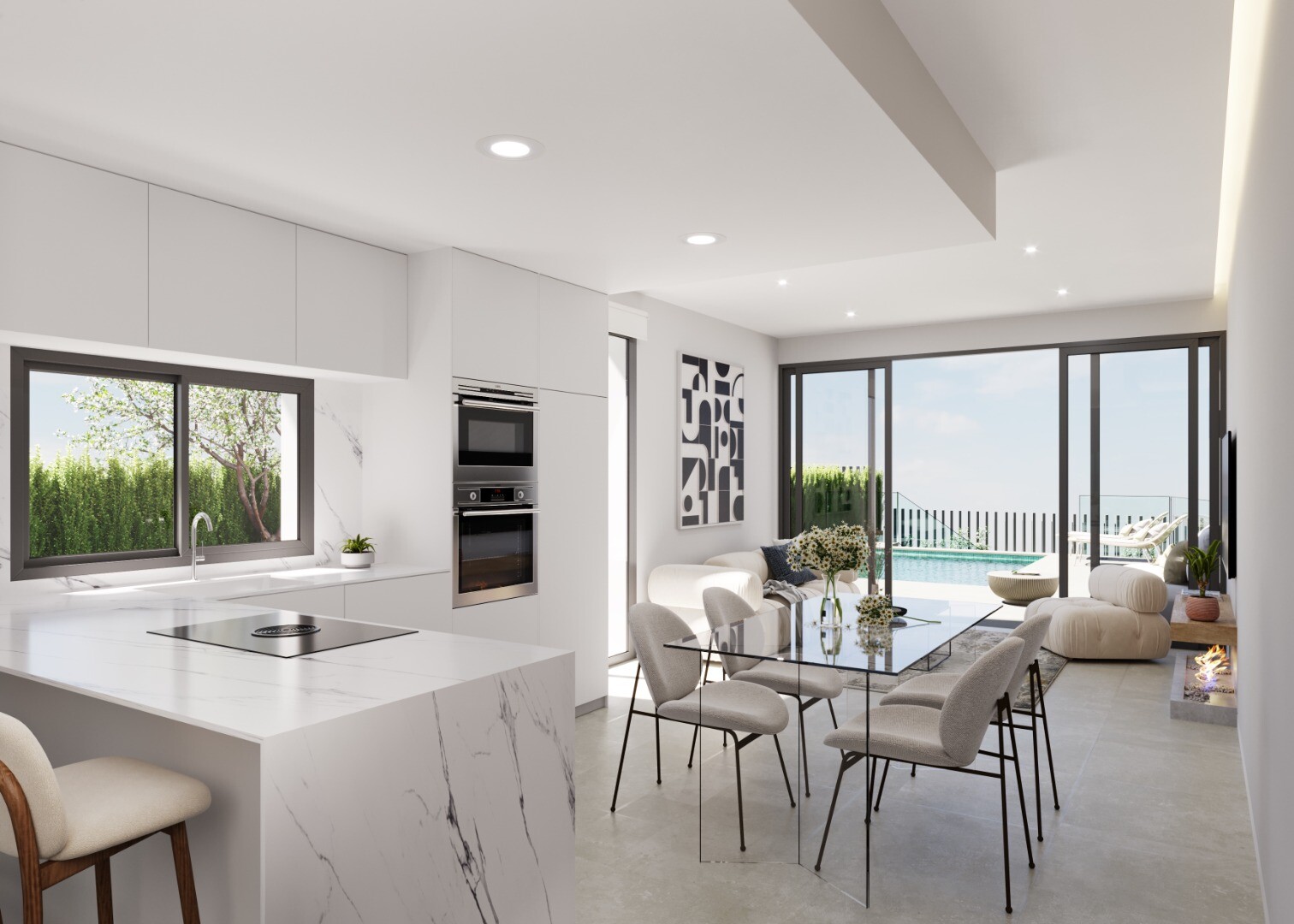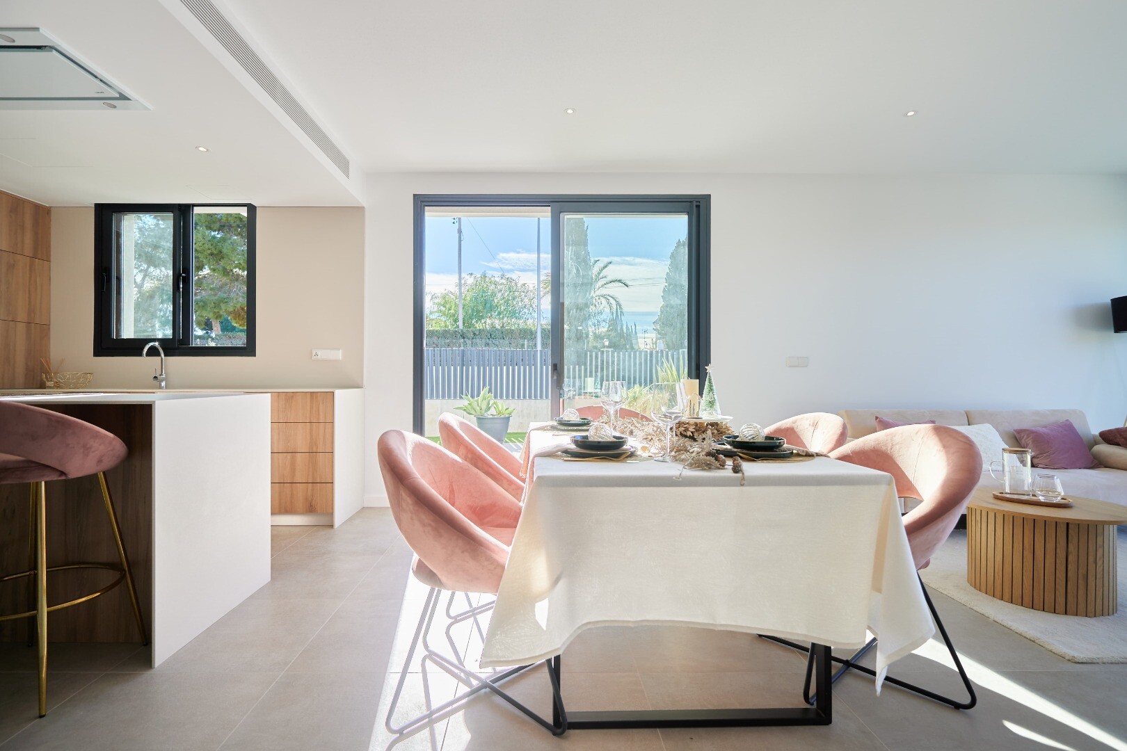 Designed with incredible open views of the Mediterranean Sea at the center of attention. The exceptional location on the development's front line makes the Mediterranean light one of the essential components of this model's villas, transforming the spaces into functional and aesthetically pleasing rooms, maximizing enjoyment and comfort. Wonderful ...open views of the sea bring warmth and harmony to the spaces. Each bedroom is designed to provide the harmony and balance necessary to create your personal paradise, where you can make your dreams come true. Large windows provide that sense of freedom, relaxation, and comfort so necessary for a restful night's sleep. Large open spaces, carefully designed to provide maximum comfort and enjoyment. A private pool and parking area with pergola, a lounge terrace, a modern Mediterranean design, and a combination of materials and textures make these villas your perfect home!