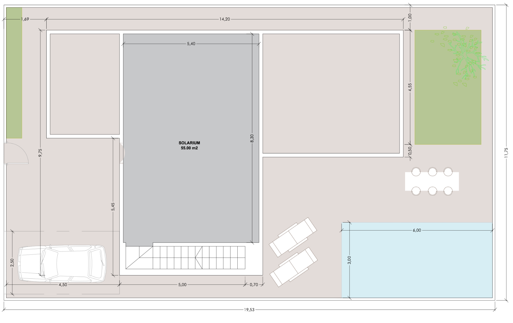 Solarium 55m2. Swimming pool 5,40m x 3m